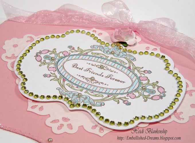 I added some glitter around the outer edges of the card and Baby Bling LeCreme Baby Pearls-100 Count.
